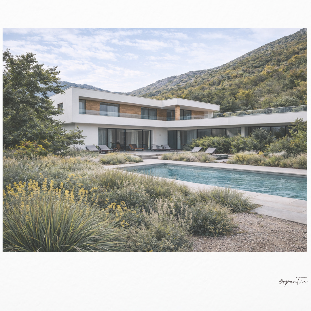 Il progetto di giardino dry garden a Riva del Garda nasce per una villa privata, su commissione di un giardiniere professionista, un committente con una profonda conoscenza delle piante e del loro comportamento nel tempo. Questo ha permesso di sviluppare un disegno paesaggistico particolarmente rigoroso, in cui ogni scelta botanica, compositiva e tecnica risponde a criteri di equilibrio, durata e coerenza con il paesaggio del Lago di Garda — un approccio che caratterizza anche la progettazione di giardini per residenze private sviluppata da Opuntia.